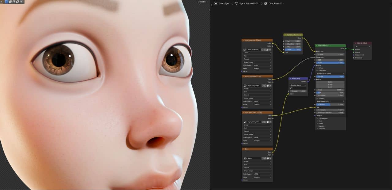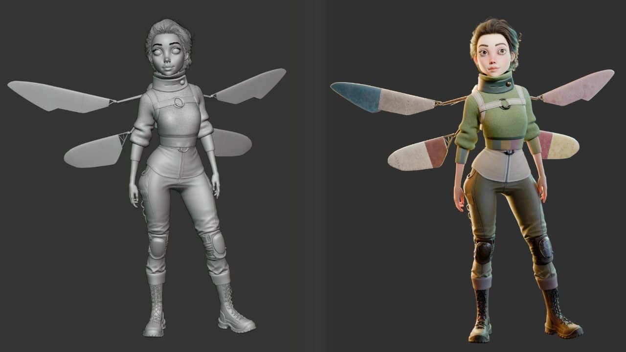 Overview of the UpdateWe start with clean shader blockouts for the body, clothing, and props to establish colors and material direction. From there, we use vertex painting and baking (AO, pointiness, depth) to build realistic surface detail, starting with the body. We then explore procedural workflows and baking textures for the eyes. Next, we move into PBR workflows for fabrics, leather, and hard surfaces, creating wear, scratches, and grunge. You’ll also learn how to build node groups for modular, reusable setups. And finally, we cover hair and grooming using Blender’s hair GeoNodes for eyebrows, eyelashes, and hairstyles. By the end, you’ll have a fully render-ready character, optimized and fit for rigging or exporting into other projects. 👉 Check out the full course and update here It’s exciting to finally offer a complete, studio-quality character creation course entirely inside Blender. Covering anatomy, sculpting, modeling, UVs, retopology… and now texturing, shading, and grooming. A complete pipeline to help you craft characters that truly feel alive. “The definition of superb animation is that each character on the screen makes you believe it is a thinking being.”